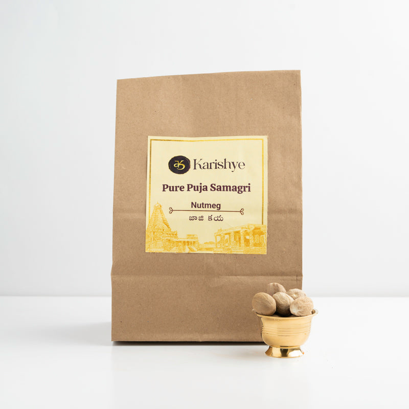 In Hinduism, nutmeg is commonly used as an offering to deities, particularly Lord Shiva, who is known to be fond of the spice. It is also used in various Pooja rituals, such as during the lighting of lamps, to invoke positive energies and ward off negativity,Apart from its religious significance, nutmeg is also known for its medicinal properties. It is believed to have anti-inflammatory, antiseptic, and analgesic properties, and is used in Ayurvedic medicine to treat various ailments, including digestive issues, insomnia, and anxiety.