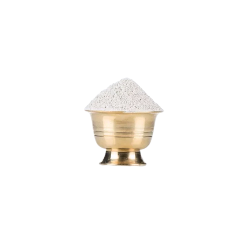 Vibhuti / విభూతి (Sacred Ash) holds immense spiritual significance in Hindu traditions and is widely used in religious ceremonies for its purifying and protective properties. Made from the holy ash of sacred wood burnt in yagnas (fire rituals), Vibhuti symbolizes divine energy, purity, and the transient nature of life.