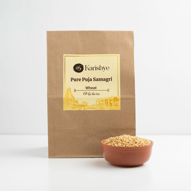 In worship, Wheat is often offered as naivedyam to deities, representing gratitude for sustenance and well-being. It is also used in preparing prasadam, which is distributed among devotees as a sacred blessing. In certain rituals, wheat is offered to planetary deities and used in charitable donations, believed to bring good fortune, stability, and spiritual growth.