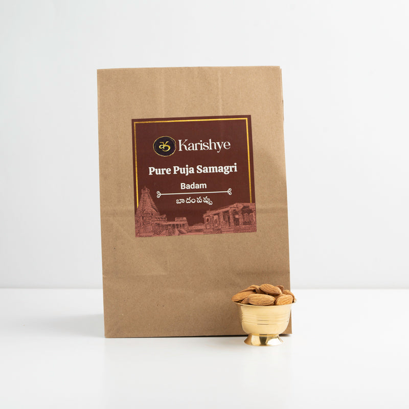 Almonds / బాదం are revered in Hindu traditions as a symbol of wisdom, strength, and prosperity. Their rich nutritional value and auspicious significance make them a cherished offering in poojas and sacred rituals.