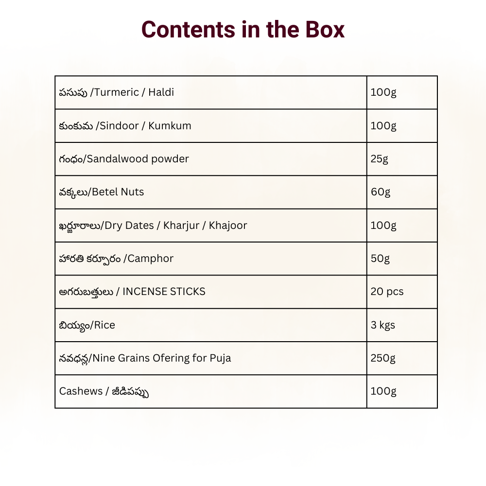 Samagri provided by Karishye (Already included in package)