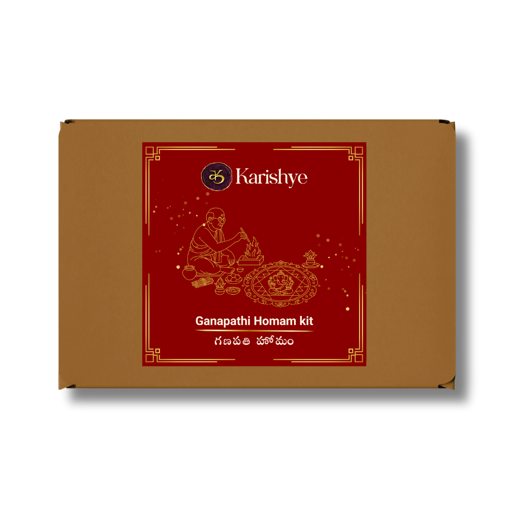 Perform Ganapati Homam the right way with Karishye’s complete, Vedic-approved homam kit. This sacred fire ritual is performed to remove obstacles, attract success, and bring positive energy into your home or new venture.